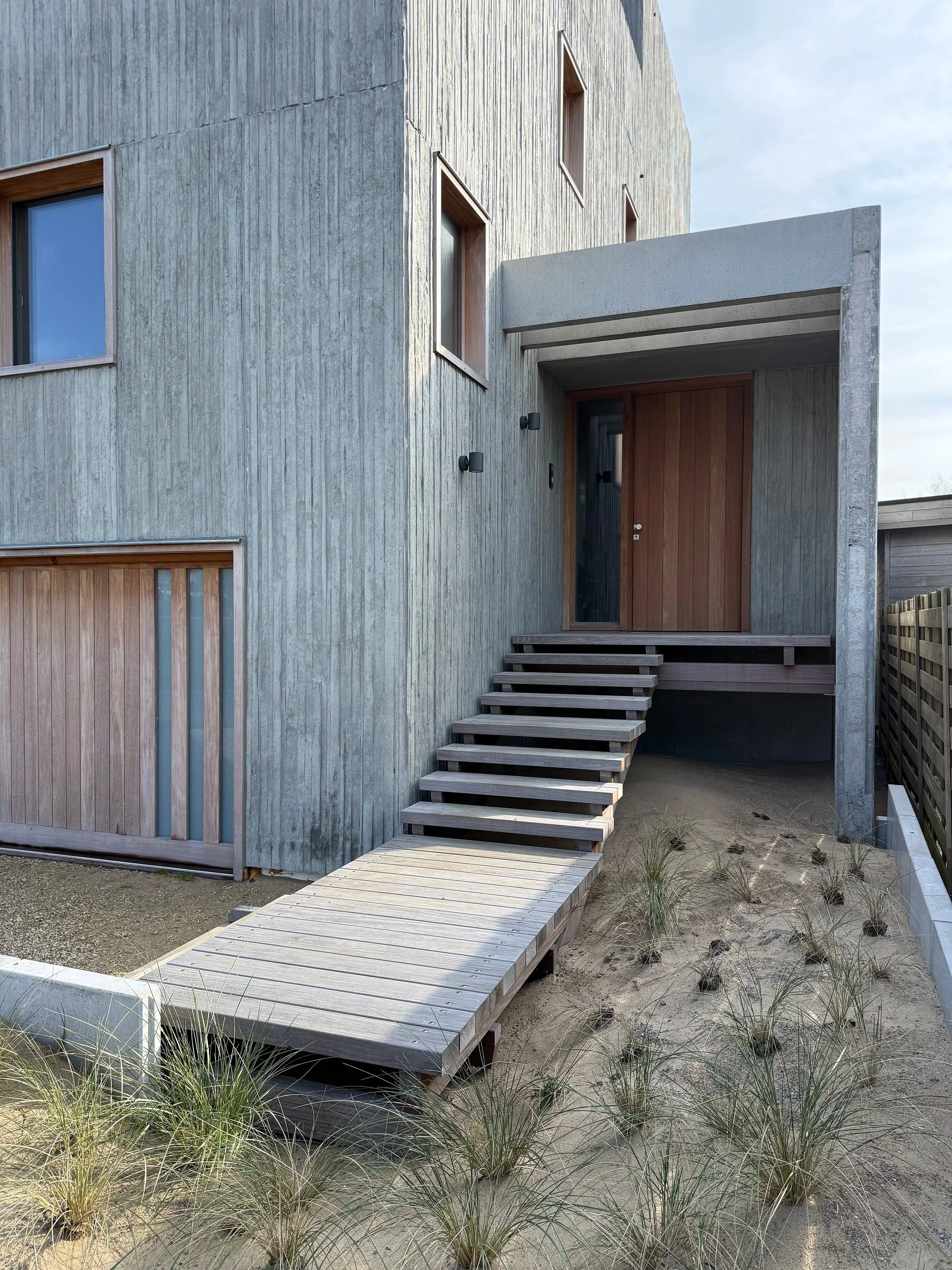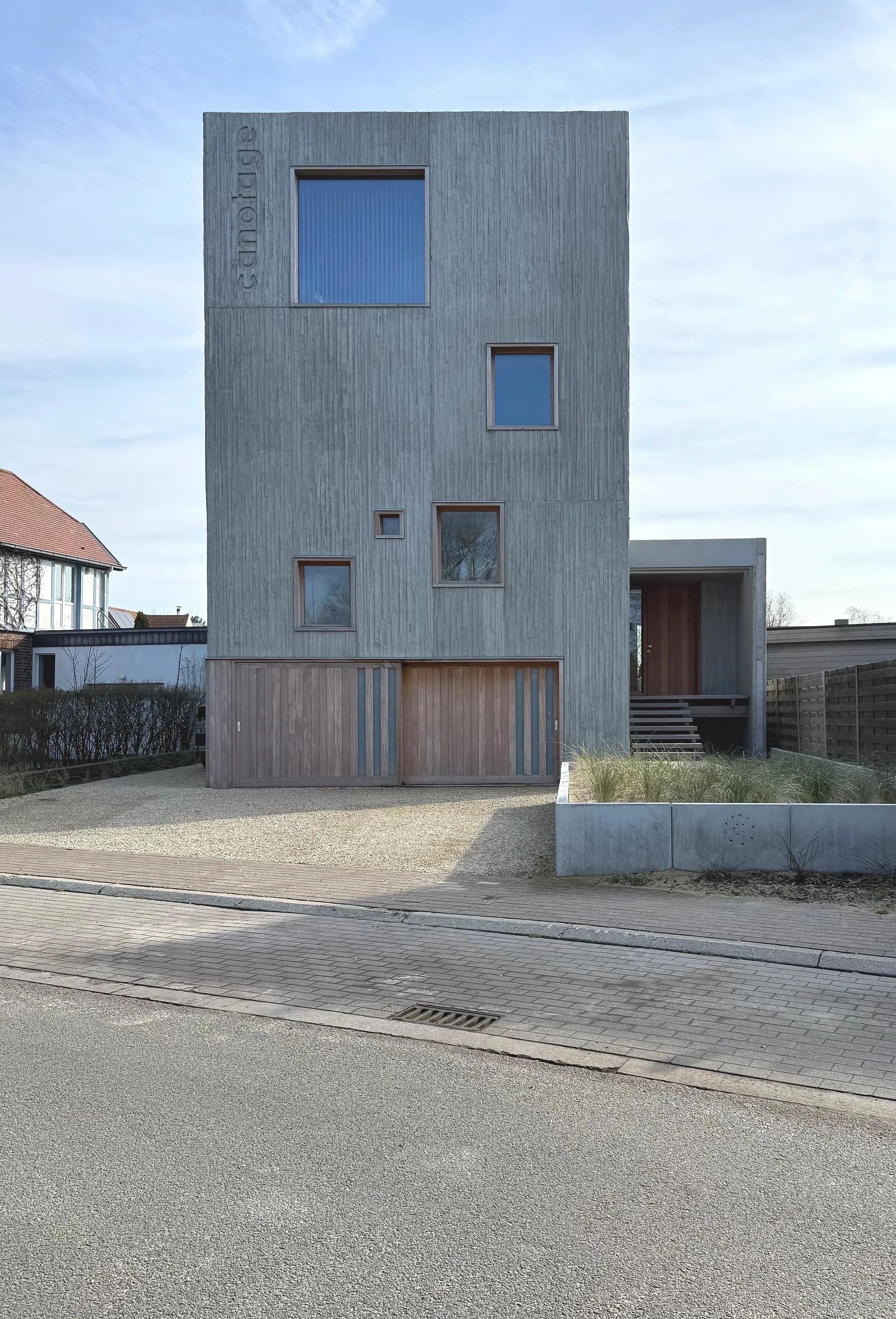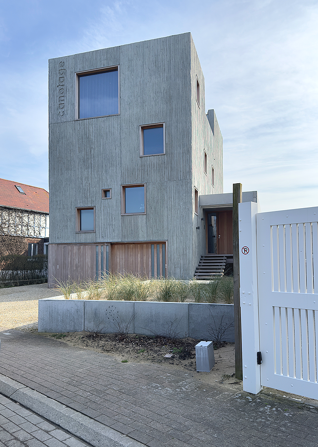 Moderne nieuwbouw ééngezinswoning gelegen aan de uitmonding van het Blankenbergs Vaartje, op de locatie van de voormalige kajakkersclub “Canotage”. De woning werd volledig opgetrokken door middel van een combinatie van geprefabriceerde relief- en ter plaatse gestorte beton. Boeiend spel van niveaus, buitentrappen en -terrassen, lichtinval, brute materialen, in combinatie met hout en sublieme vergezichten.