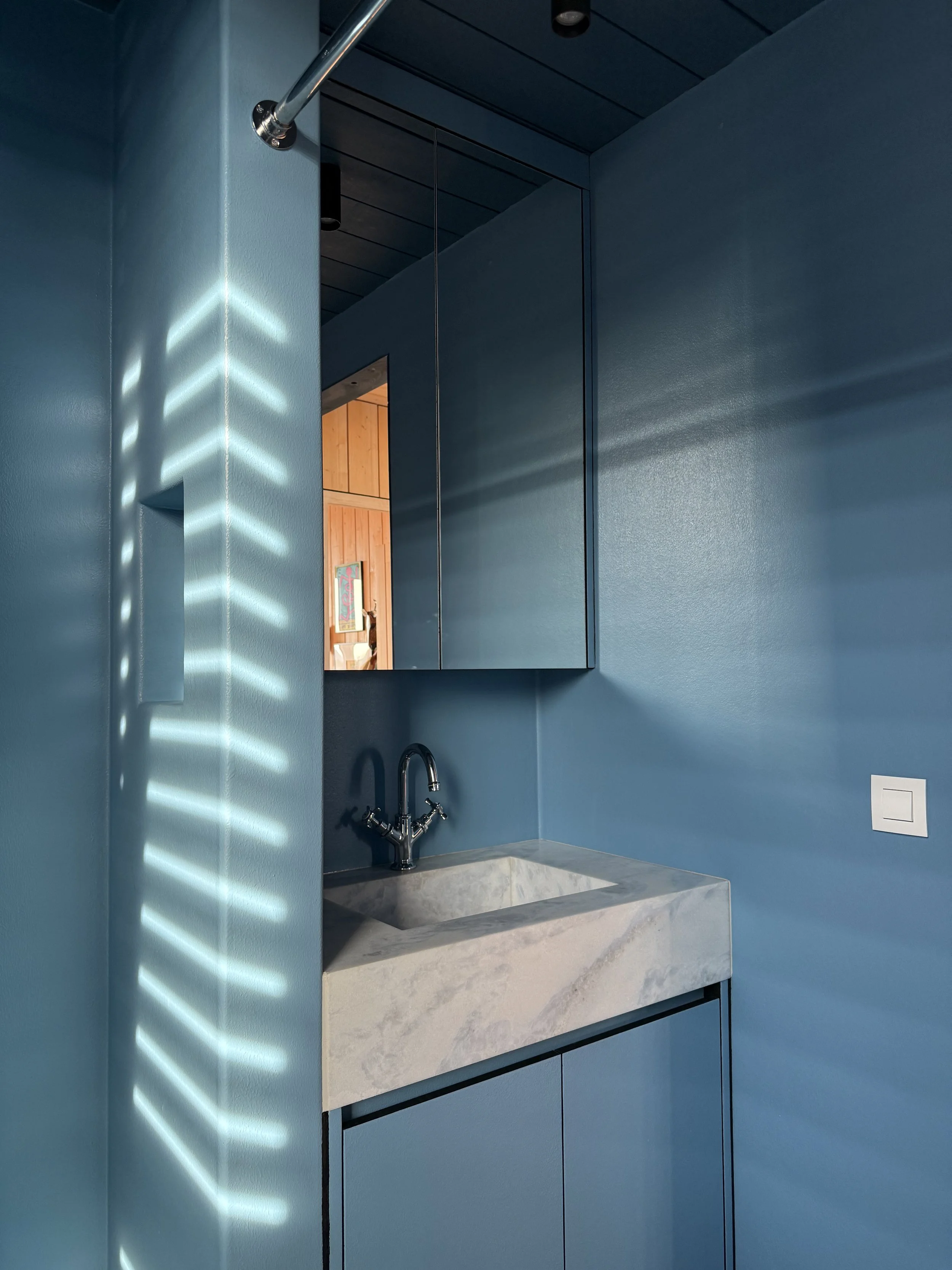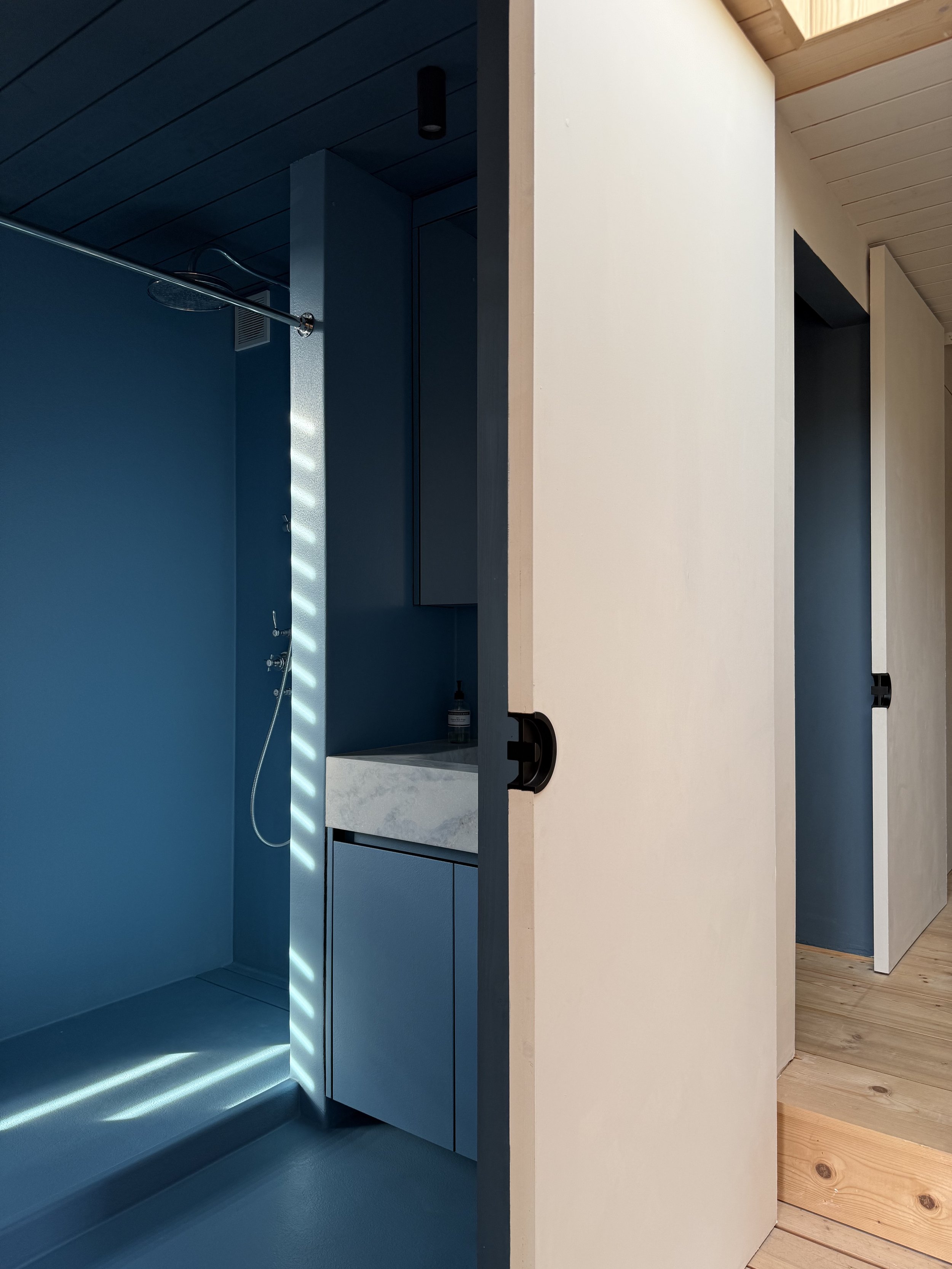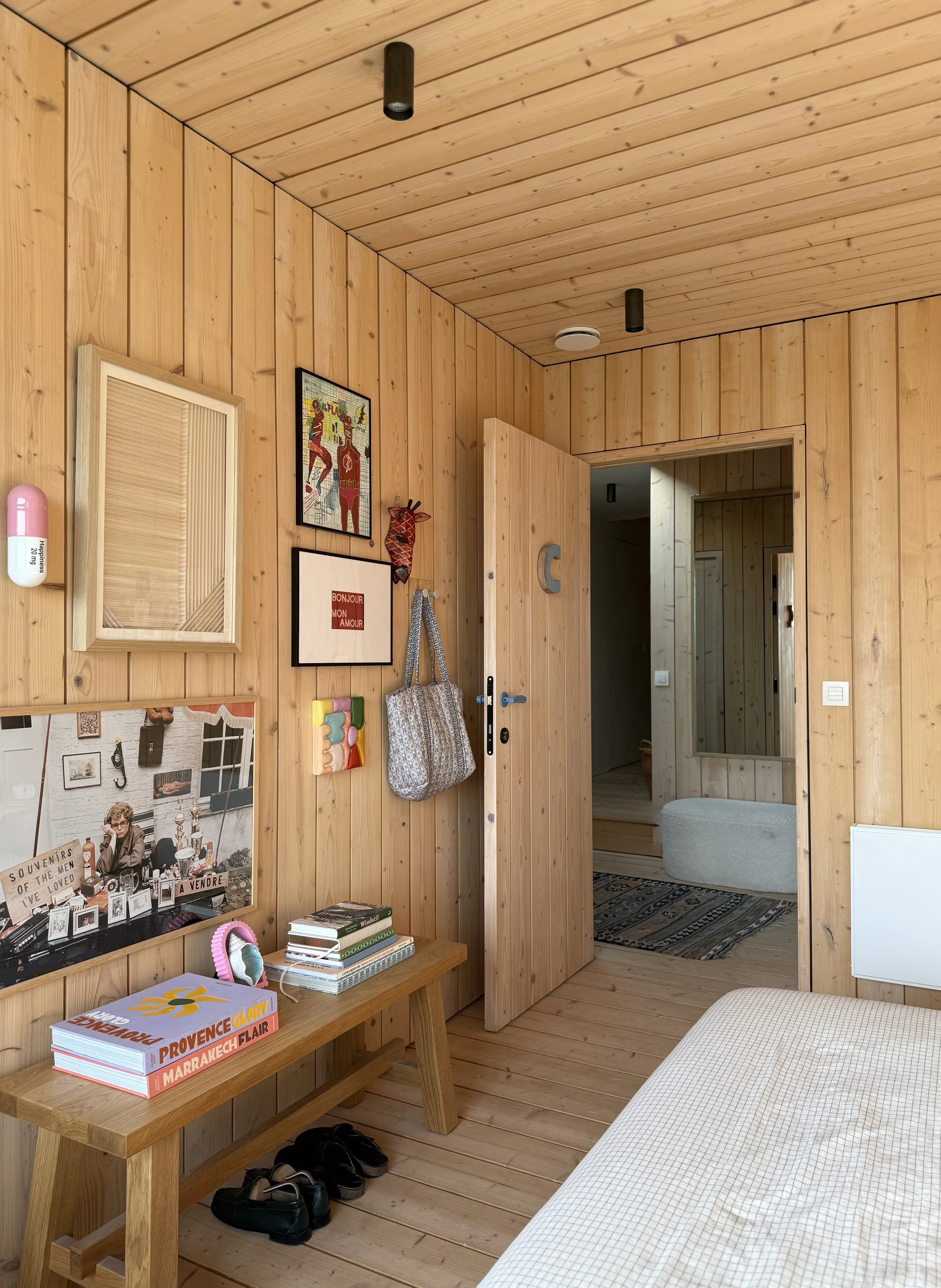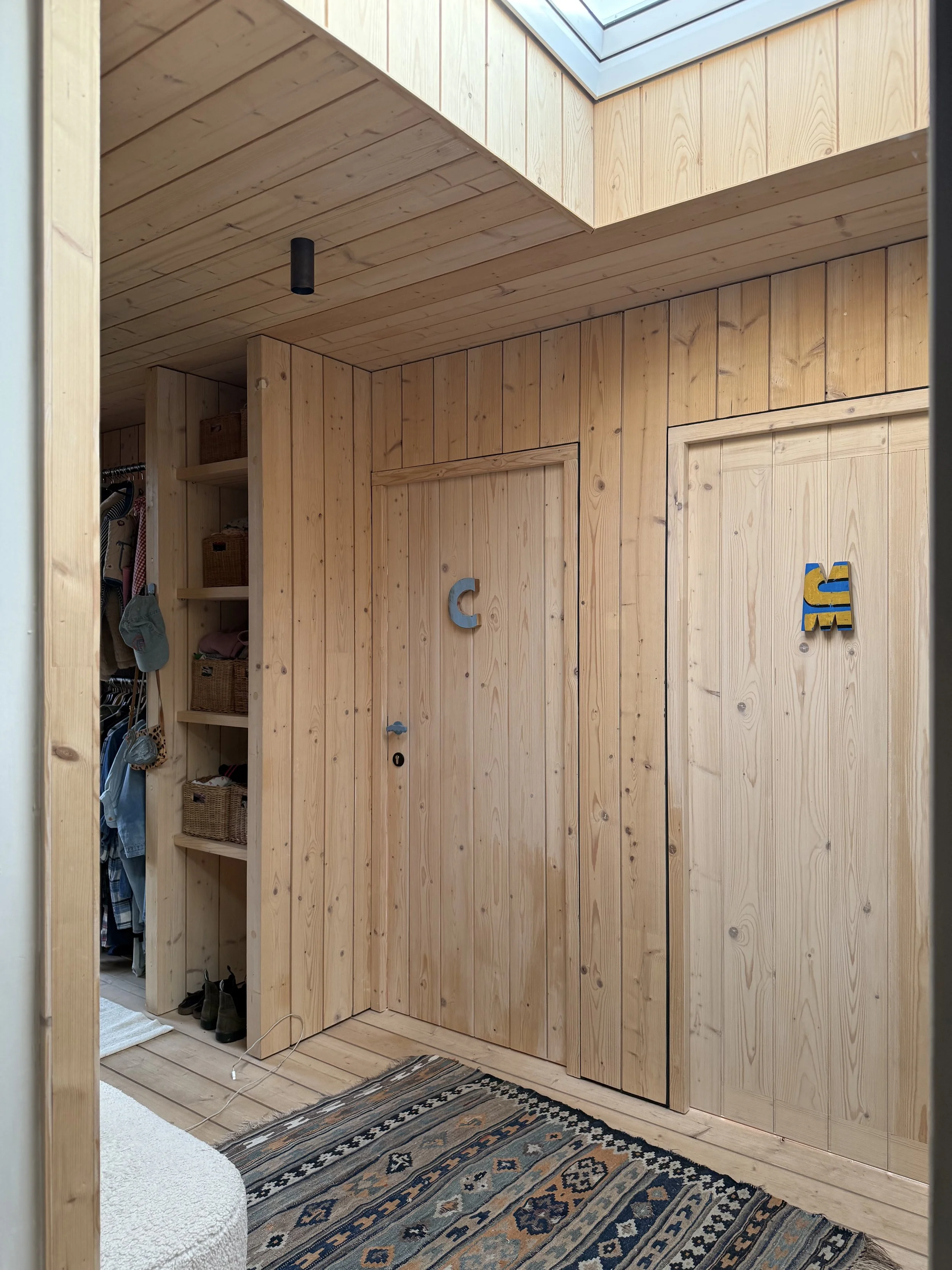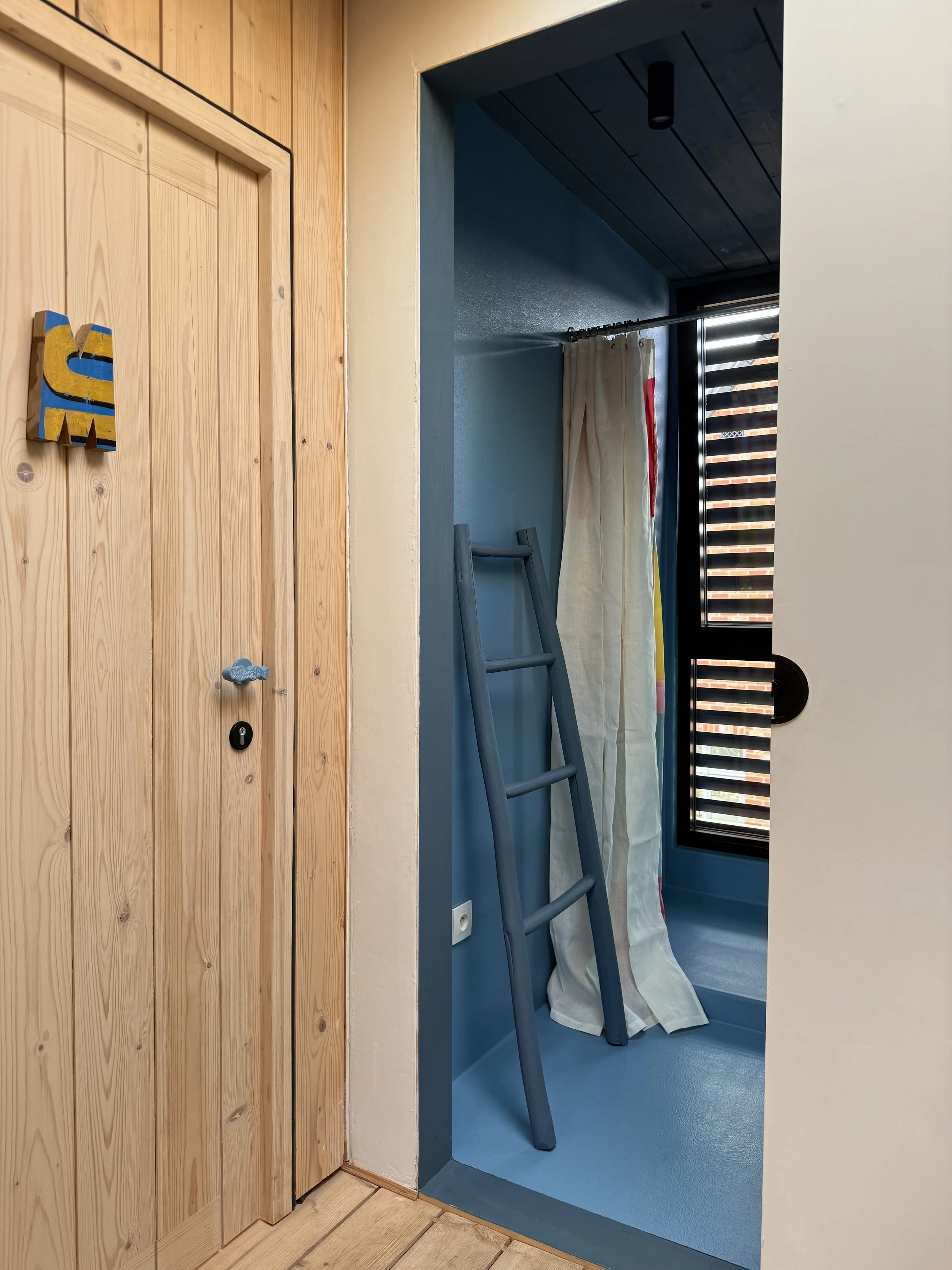 Uitbreiding van bestaand boerenarbeidershuisje, opgenomen op de inventaris van bouwkundig erfgoed. Voor het creëren van extra slaapkamers, badkamer en dressing, werd bovenop de bestaande uitbouw een optop voorzien in moderne massieve houtbouw. Een stijl die werd doorgetrokken voor de interieur-afwerking van de slaapkamers. De badkamer is volledig uitbekleed met polyester in een frisse blauwe kleur, wat een verrassend contrast vormt met de andere kamers.