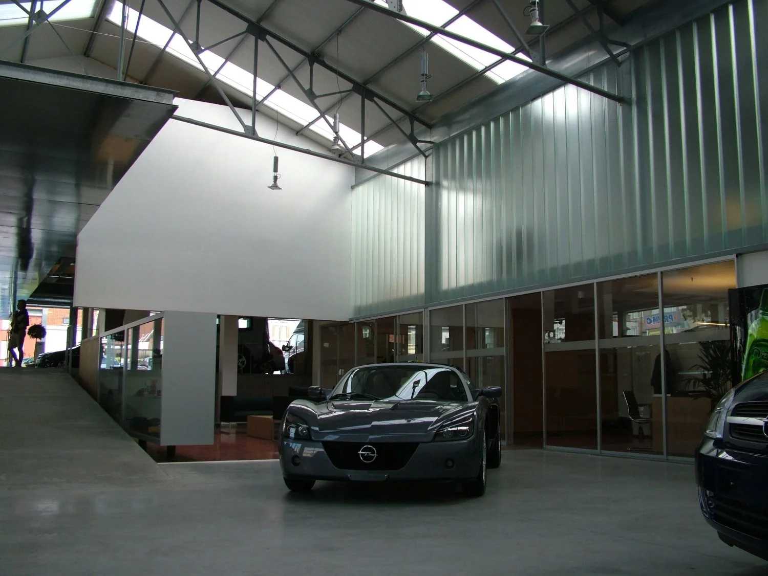 Garage met toonzaal “Delta motors” te Oostende. Verbouwing garagegebouw met nieuwbouw toonzaal voor auto’s (Opel) te Oostende. Industriële uitbreiding met extra aandacht voor transparantie, licht en duurzaamheid. Staalconstructie met voorzet gevelbekleding in transparante glaspanelen in een galva-stalen structuur. Het geheel werd opgebouwd rekening houdende met het principe van free cooling.