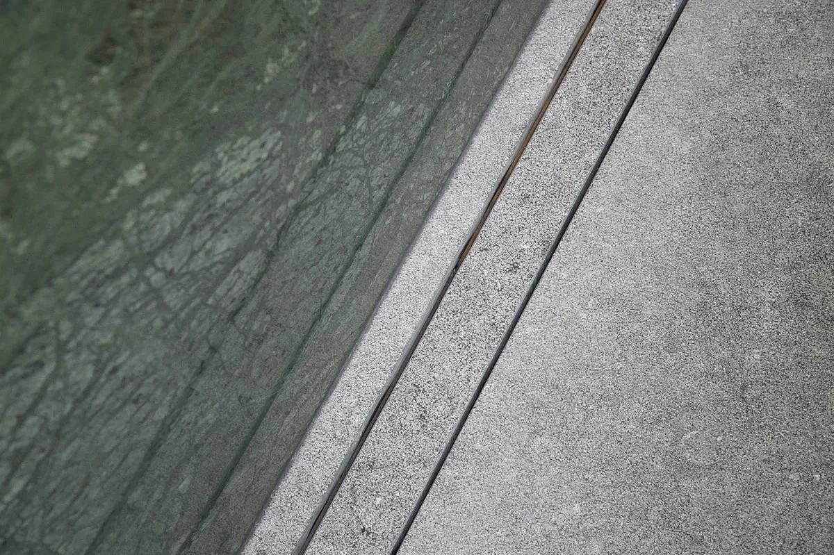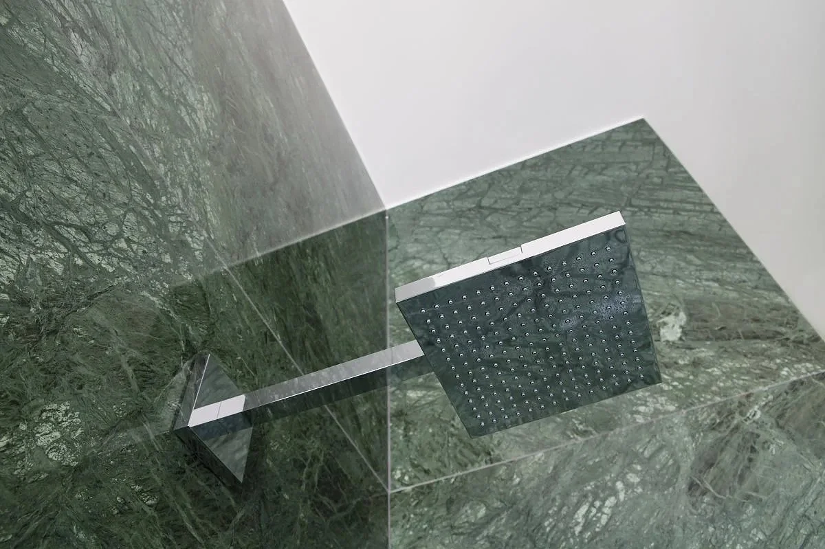 Nieuwe keuken en badkamer in een belle epoque woning. De eclectische stijl combineert verschillende duurzame materialen zoals marmer, bubinga hout en een modernistische cementtegel voor de keuken en de combinatie van marmer en arduin voor de badkamer.