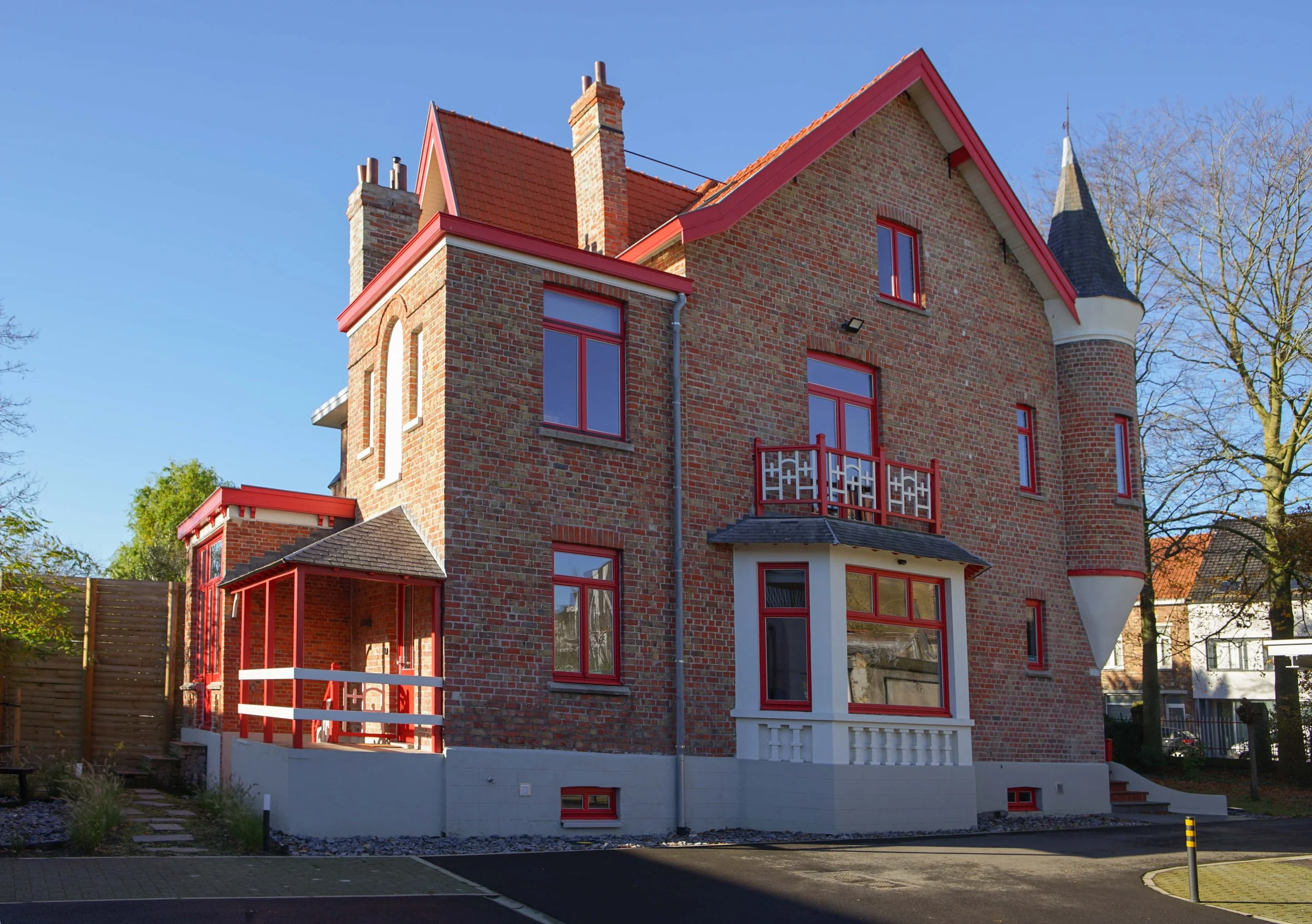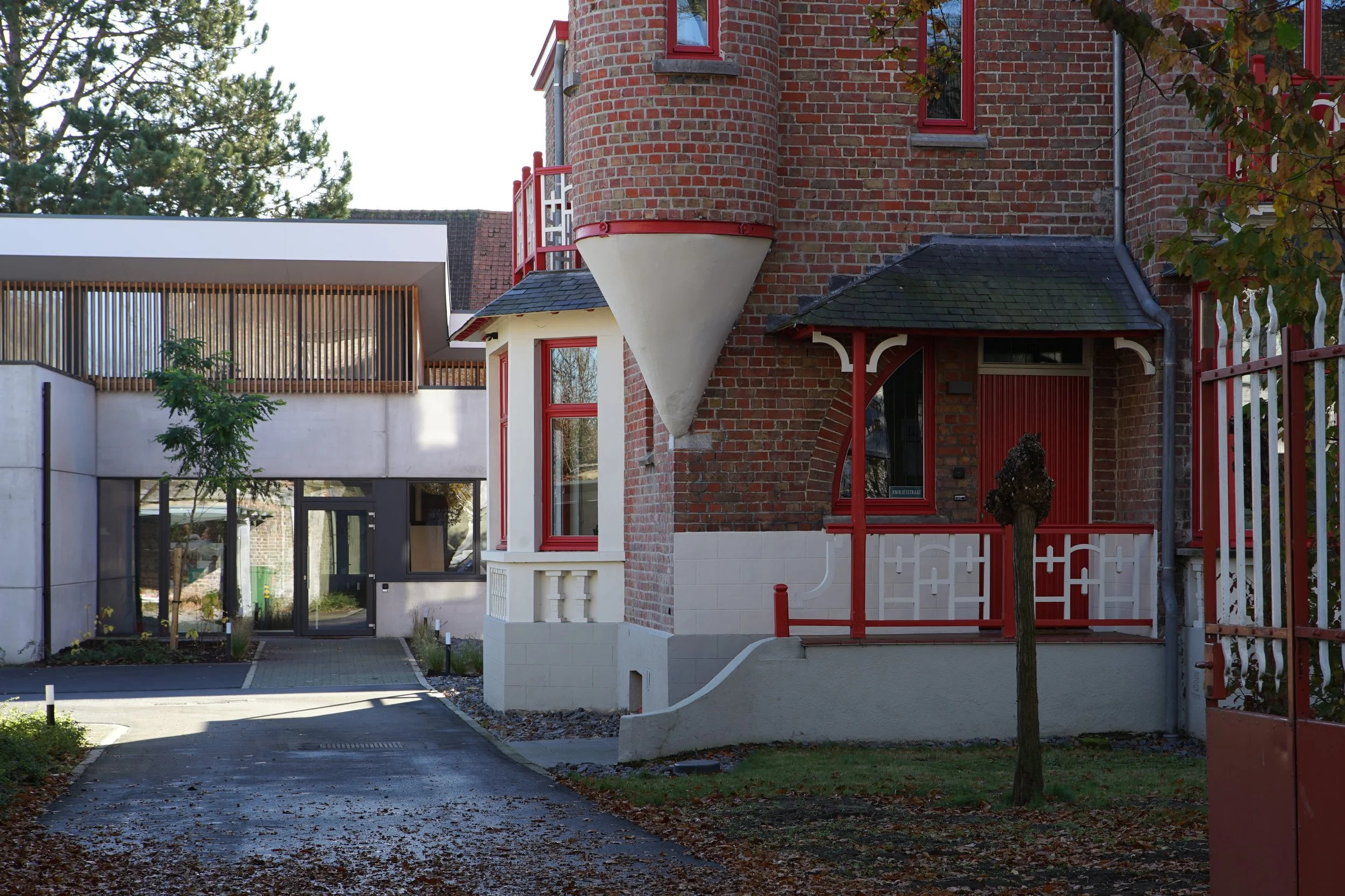 Totaalproject Pleegzorg West-Vlaanderen, locatie Brugge. Op de site werd enerzijds een Eclectische villa, vastgesteld op de inventaris bouwkundig erfgoed, gerestaureerd en gerenoveerd in zijn totaliteit, met maximaal behoud van authentiek karakter; en anderzijds een nieuwbouw gerealiseerd volgens de principes van de betere industriebouw. Beide gebouwen huisvesten kantoren, gespreksruimtes, sociale ruimtes, enz…