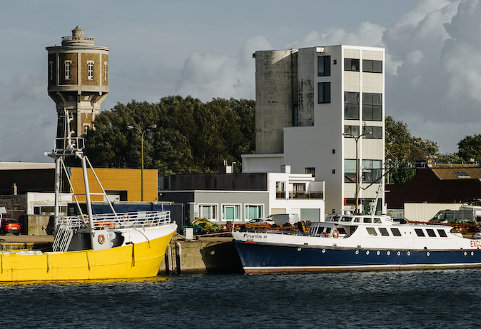 Transformatie oude ijsfabriek “Everest”, gelegen langs het visserijdok van Oostende, tot eigentijds architectenkantoor voor Que Mas. Multifunctionele invulling in een authentiek, industriëel gebouw.