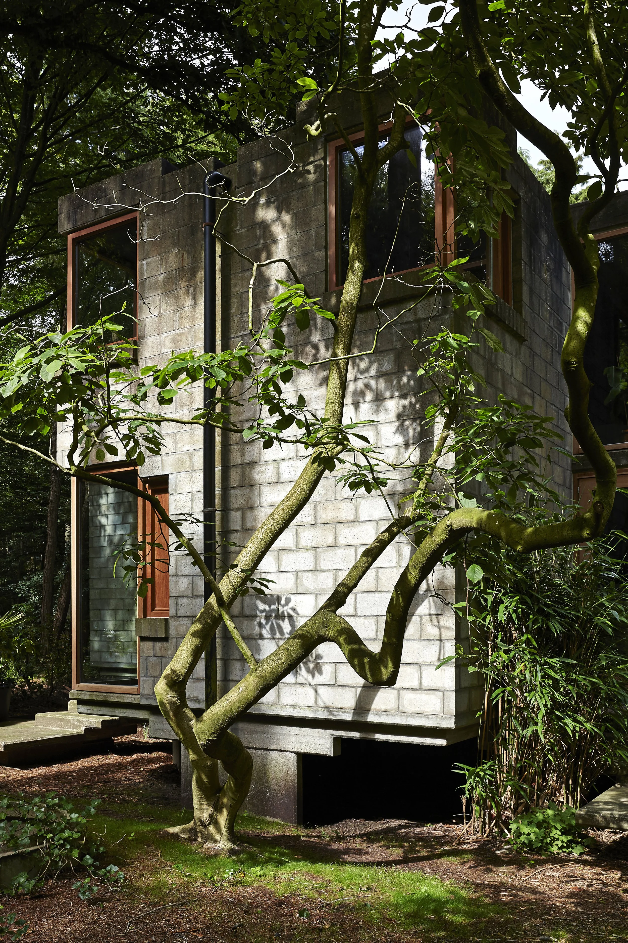 Restauratie en renovatie van achitecturale brutalistische parel “Architectenwoning Marc Dessauvage” te Loppem. Het beschermd monument Is volledig gebouwd in betonnen metselwerk met ter plaatse gestort beton. De woning met omliggende tuin stond bijna 10 jaar leeg en verwaarloosd. Deze werden volledig gerestaureerd en gerenoveerd, dit met trouw aan de visie en filosofie van het oorspronkelijke ontwerp. Vernieuwende ingrepen brachten het pand op vlak van energiewaarden binnen in de 21e eeuw. De restauratie werd verkozen als één van de laureaten van de Onroerend Erfgoedprijs 2017.