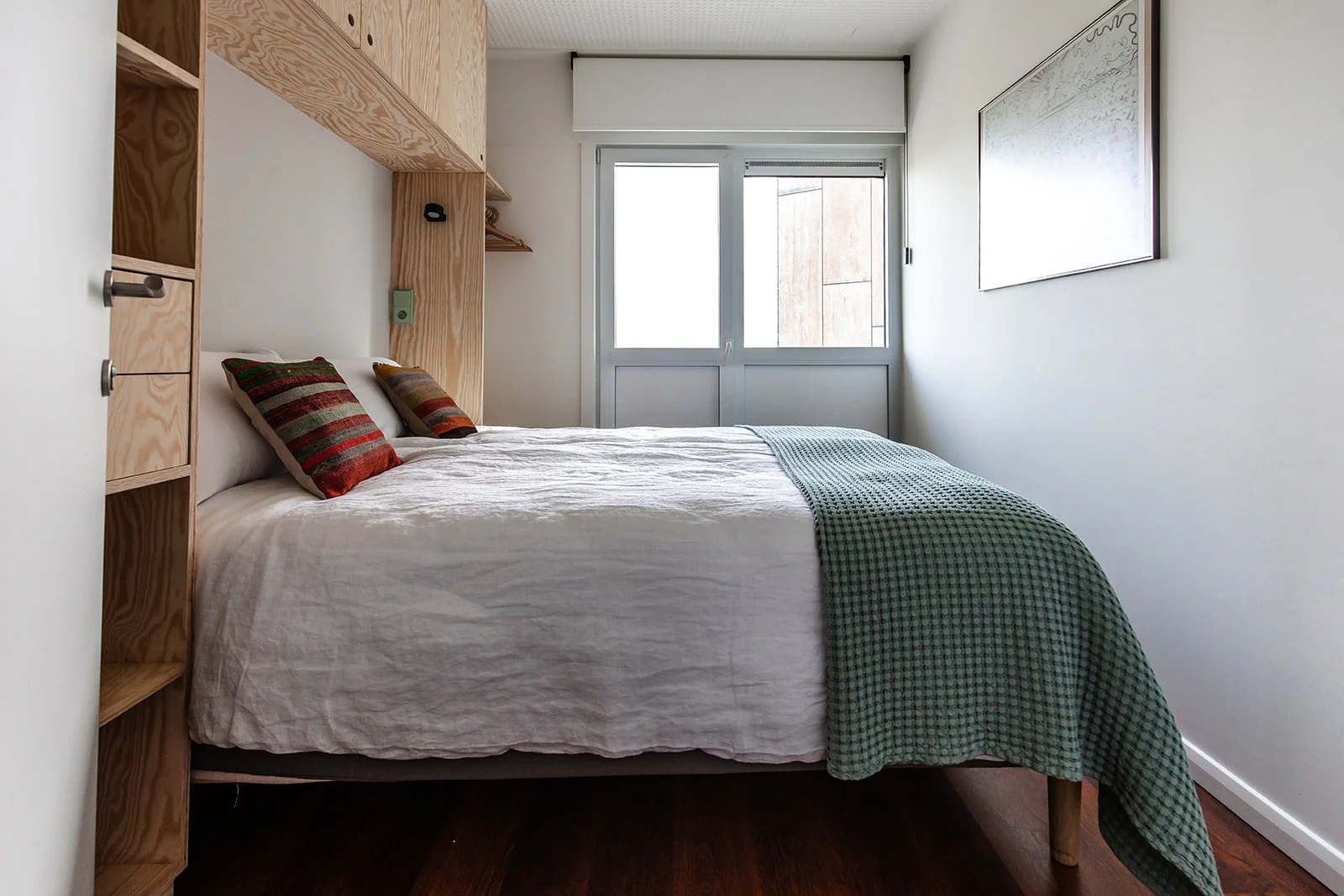 Totaalrenovatie van een vakantieappartement in bouwkundig erfgoed in De Haan. De keuken, de badkamer en de vloeren werden vernieuwd, de meubels en decoratie voor deze inrichting door ons gekozen.